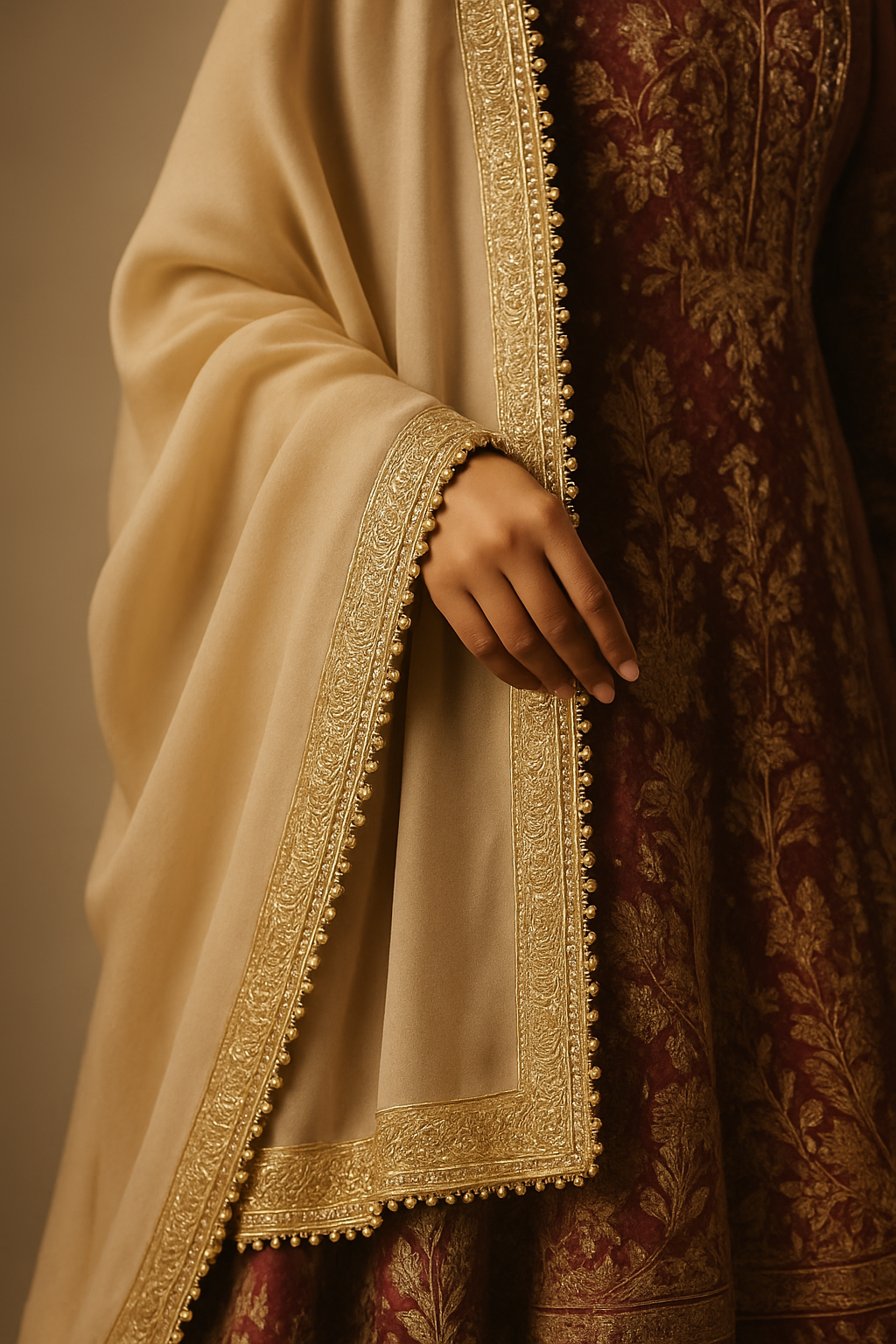 - Premium Material Selection: We source high-quality lace, borders, and trims that complement your dupatta while ensuring durability and colorfastness