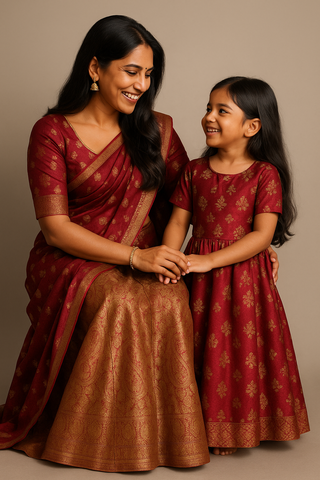 Our mom and daughter matching service goes beyond simple coordination – we create thoughtfully designed outfits that complement both the mother's sophisticated style and the daughter's playful spirit. From elegant matching kurtas for festivals to trendy coordinated dresses for special occasions, we ensure every stitch reflects the love and connection you share.