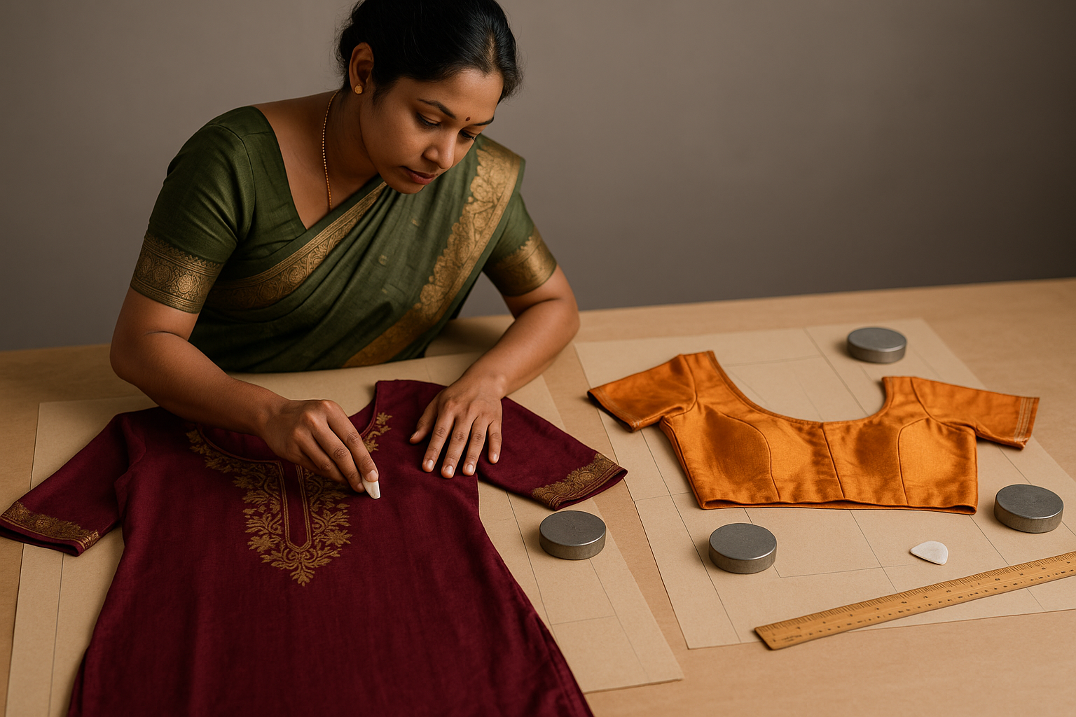 Our skilled pattern makers use advanced techniques to deconstruct and analyze your cherished garments, creating detailed patterns that capture every design element, fit nuance, and styling detail. Whether it's a perfectly fitted blouse, an elegant kurti, or a vintage dress with sentimental value, we help you recreate these treasures in new fabrics and colors while maintaining their original charm and fit.