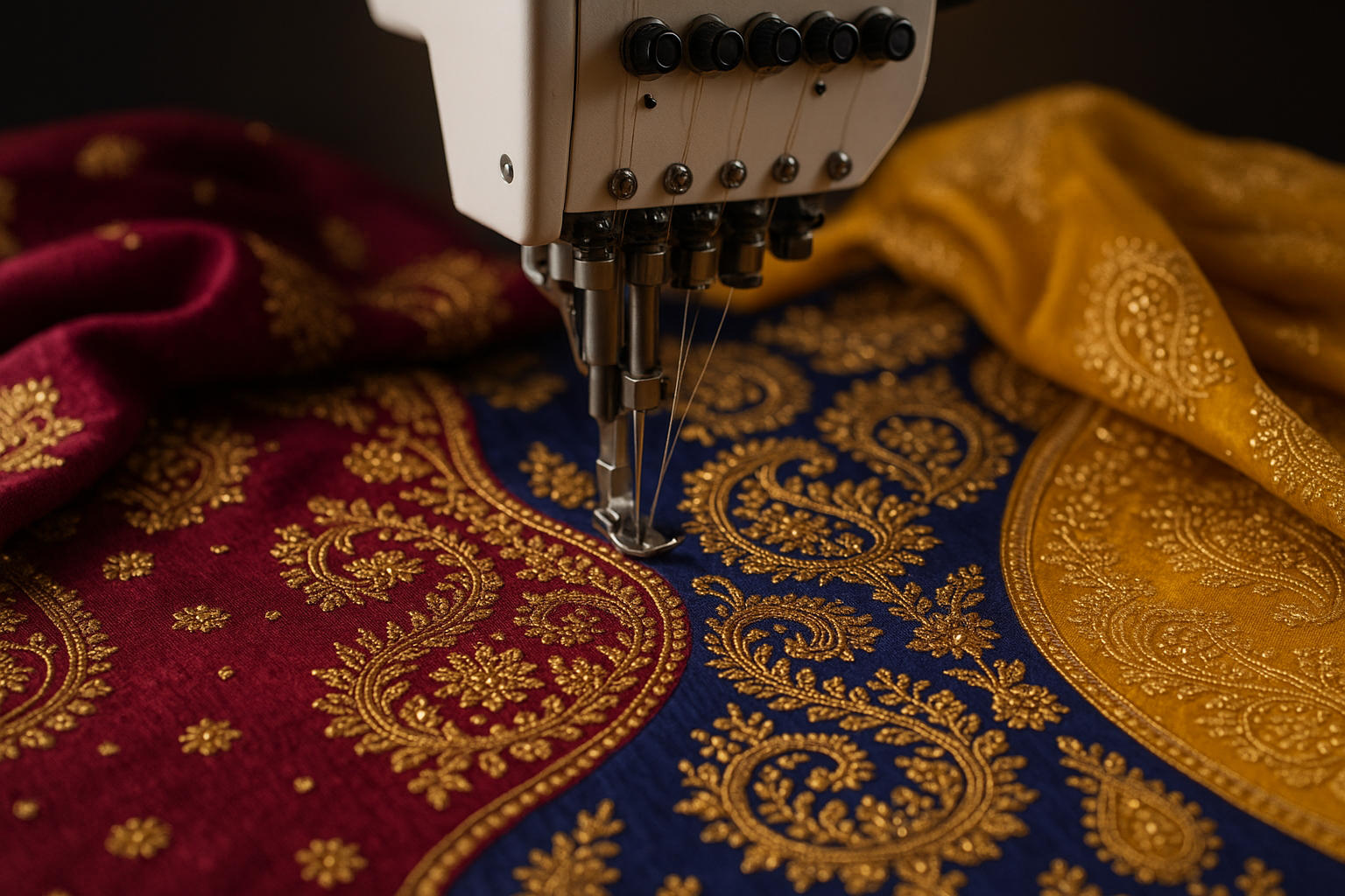 Elevate your clothing to new heights of elegance with our premium machine thread work services at Book My Stitch. Our skilled artisans combine traditional embroidery techniques with modern precision machinery to create stunning decorative patterns that add personality and sophistication to any garment. Whether you're looking to enhance a simple blouse, add intricate details to festive wear, or create unique designs for special occasions, our machine thread work brings your vision to life with impeccable craftsmanship.